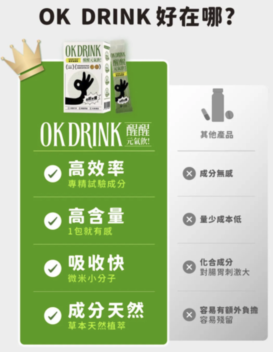 例如 OK DRINK 醒醒元氣飲 的設計,就不是單純堆疊 B群劑量,而是透過多種營養搭配,讓身體在忙碌生活中更容易維持能量代謝。